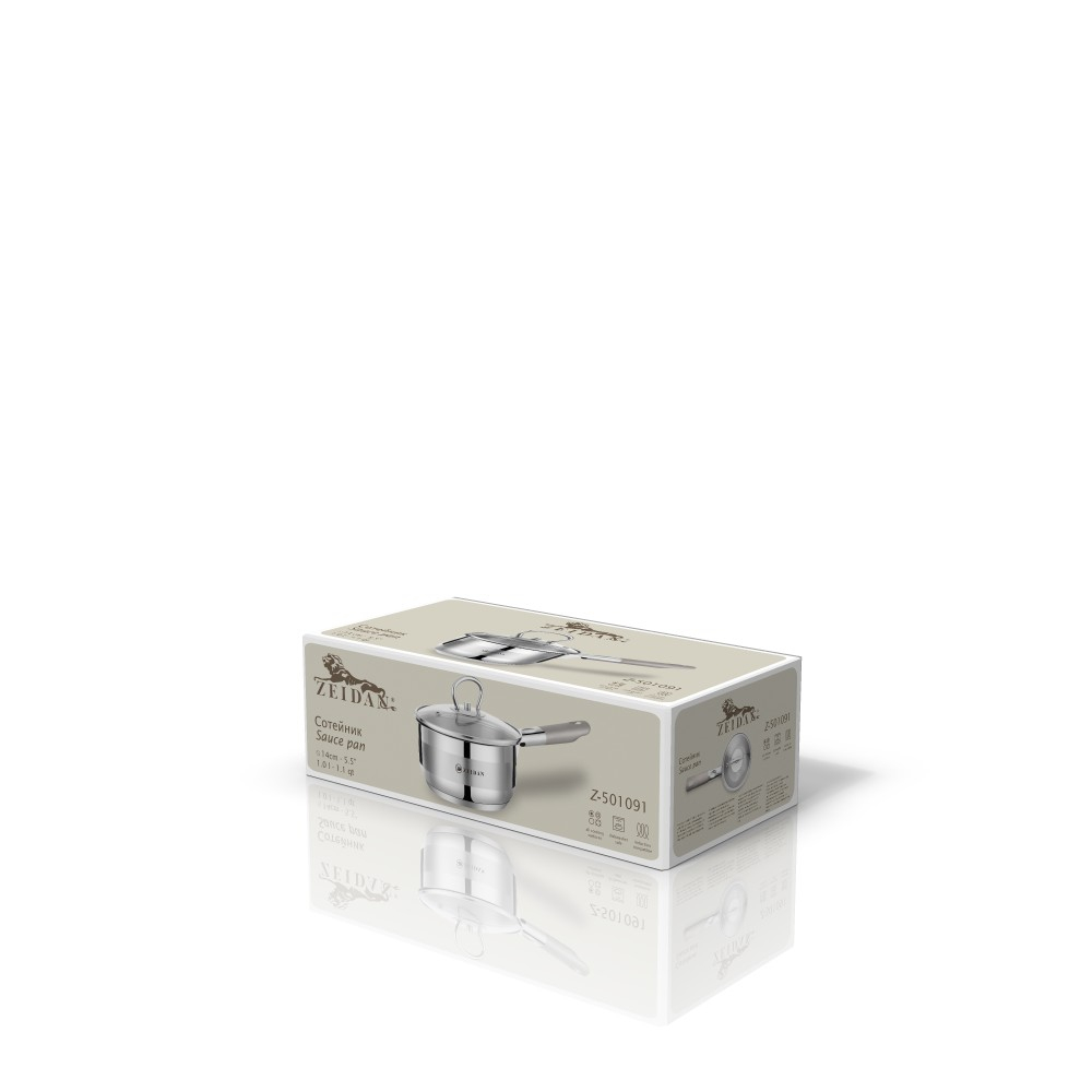 Сотейник со стеклянной крышкой - 1,0 л (d14 см), нержавеющая сталь, 3-х слойное капсулированное дно, комбинированная полировка снаружи, матовая полировка внутри.