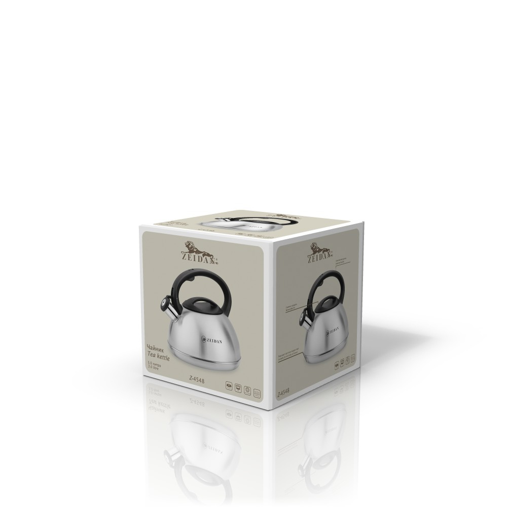 Чайник со свистком, 3,0 л, нержавеющая сталь, ИНДУКЦИОННОЕ ДНО, курковый механизм, фиксированная бакелитовая ручка.