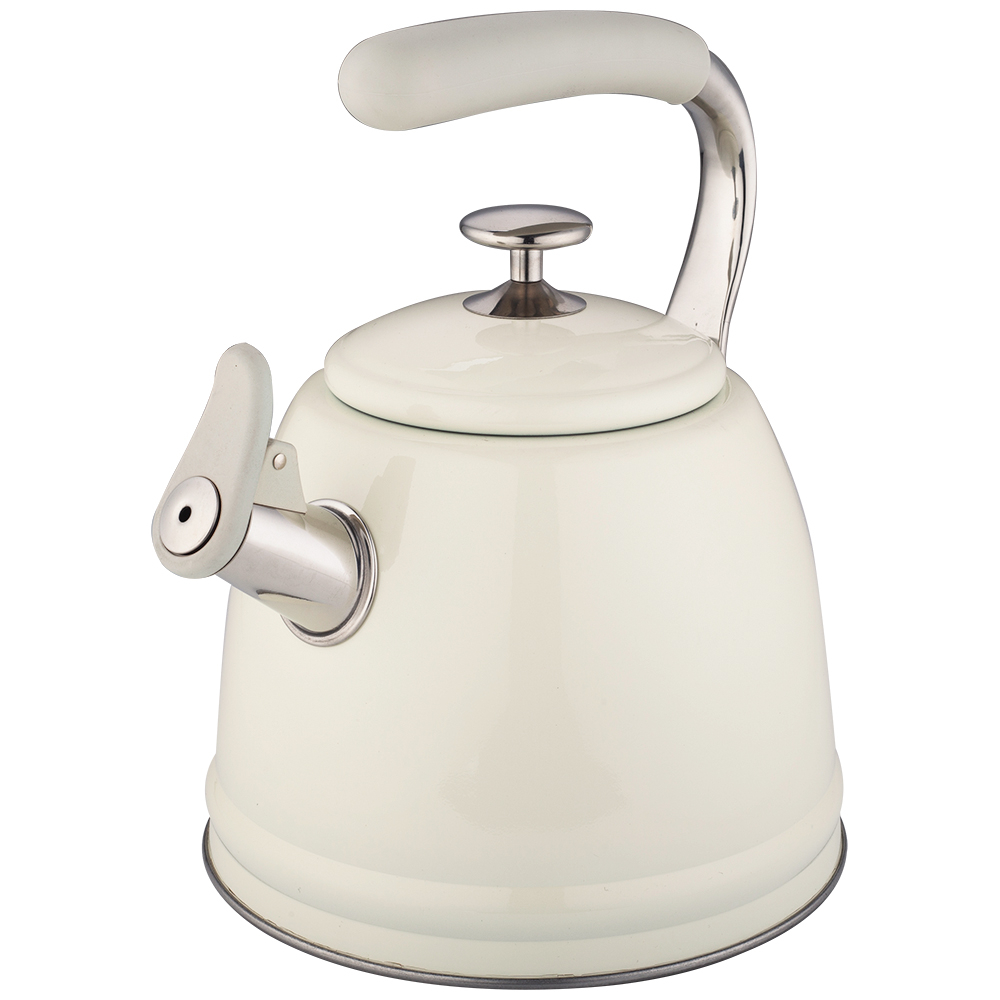 Чайник со свистком, 3,0 л, нержавеющая сталь, ИНДУКЦИОННОЕ КАПСУЛИРОВАННОЕ ДНО, курковый механизм, внешнее покрытие – антипригарное цветное покрытие, устойчивое к высоким температурам, фиксированная комбинированная ручка с покрытием soft-touch.