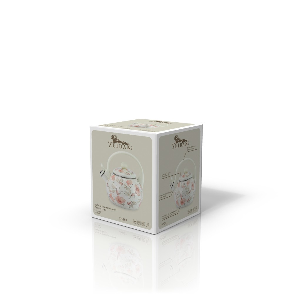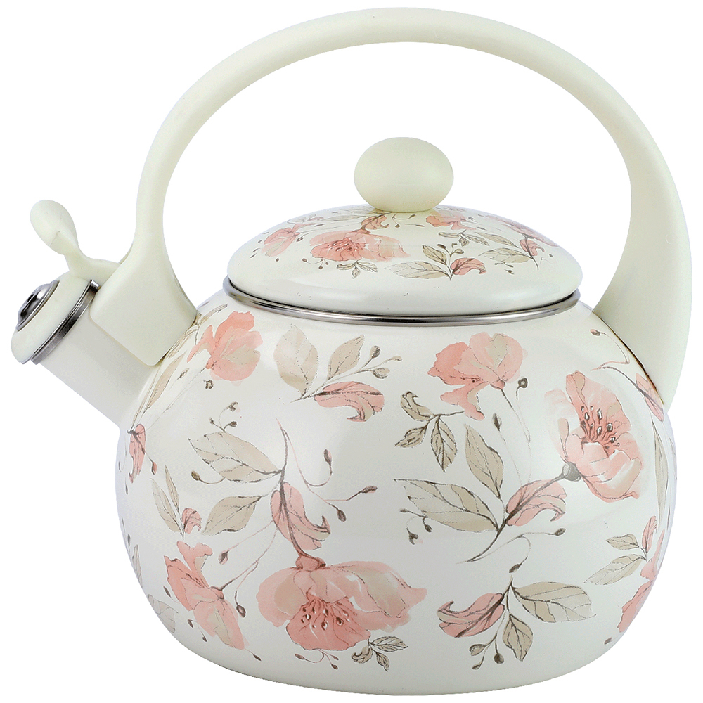 2,5 л, Чайник со свистком 2.5 л, эмалированная сталь, бакелитовая ручка, наружное покрытие - эмаль с рисунком. Подходит для индукции. Подарочная упаковка.