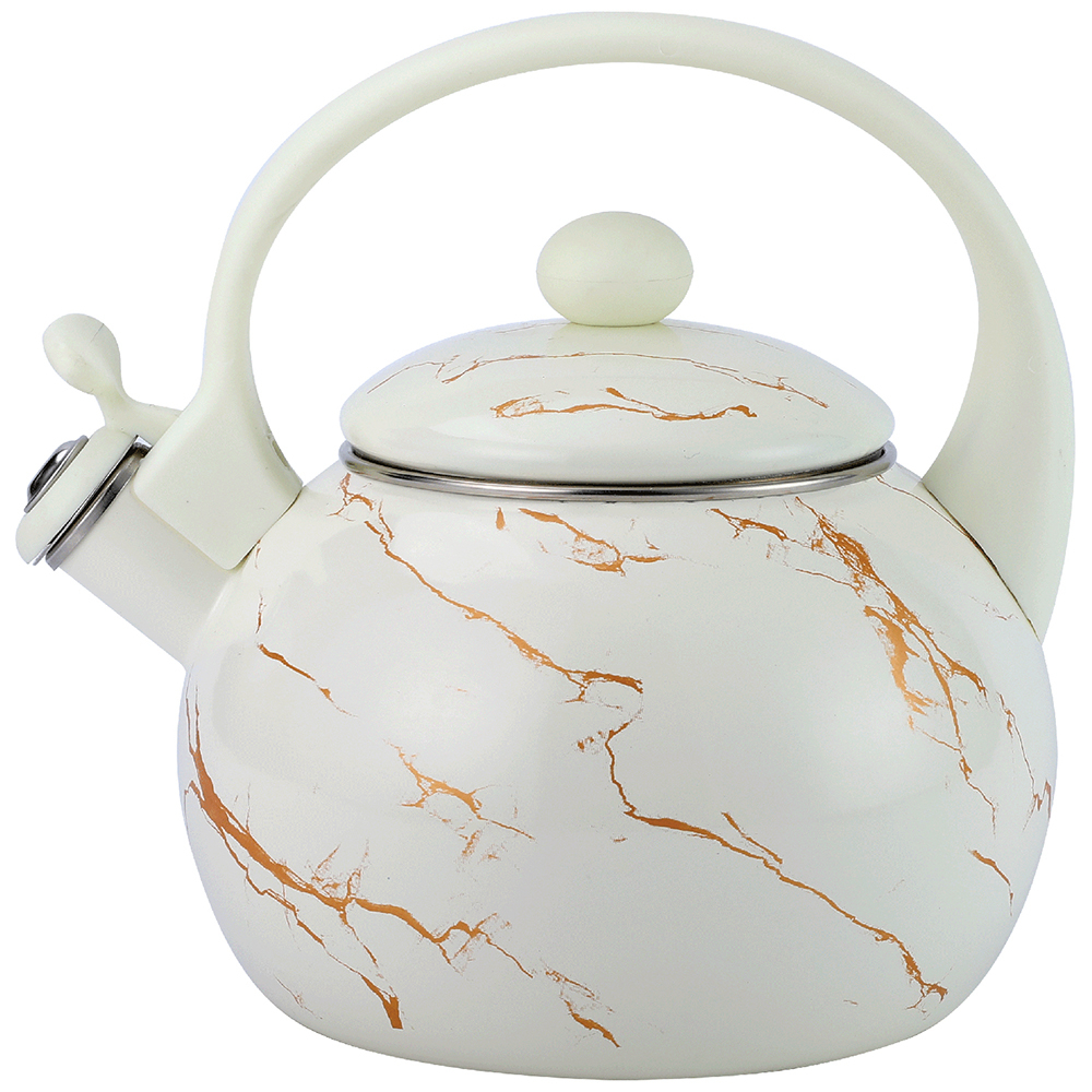 2,5 л, Чайник со свистком 2.5 л, эмалированная сталь, бакелитовая ручка, наружное покрытие - эмаль с рисунком. Подходит для индукции. Подарочная упаковка.
