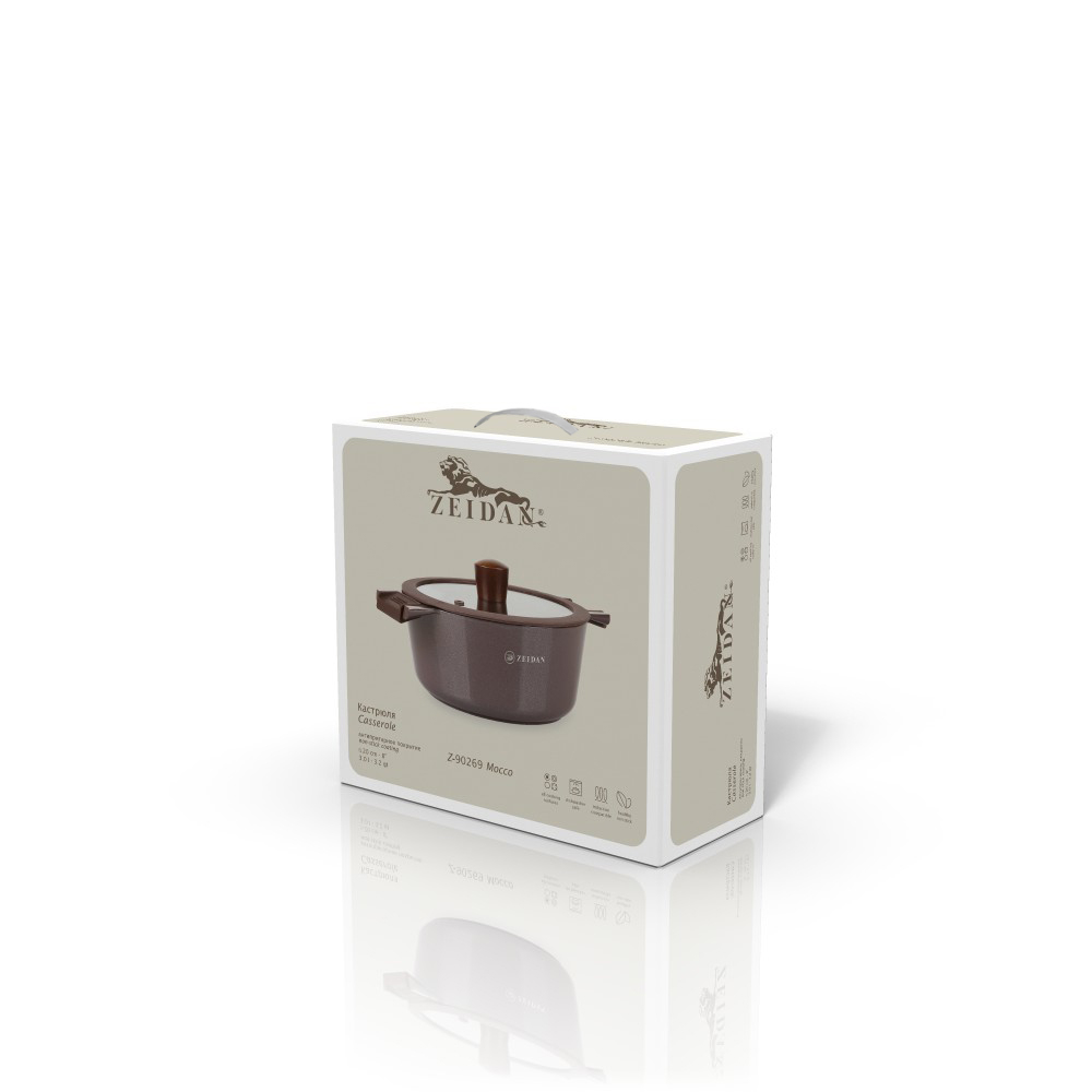 Кастрюля со стеклянной крышкой – 3,0 л (d20 см), литой алюминий, крышка - стекло с силиконовым ободком и деревянной ручкой, ИНДУКЦИОННОЕ ДНО, СИЛИКОНОВЫЕ НАКЛАДКИ, ВНУТРЕННЕЕ АНТИПРИГАРНОЕ ПОКРЫТИЕ «NEOGRES», ВНЕШНЕЕ ЖАРОПРОЧНОЕ АНТИПРИГАРНОЕ ПОКРЫТИЕ. Подарочная упаковка с пластиковой ручкой.
